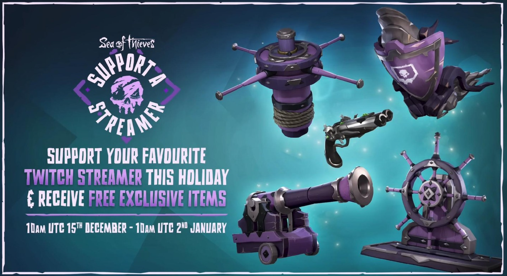 Ladyclaire83 is excited to be part of the sea of thieves stream team. The bilge rats team enables her to be able to do giveaways of in game cosmetics During the Festival of Giving she has 24 ships chair and table sets to giveaway be sure to tune in on twitch for a chance to win !